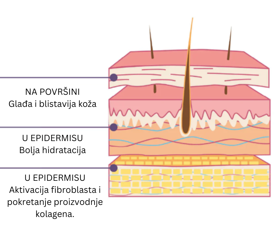Kolageni peptidi djeluju kao signal za poticanje sinteze kolagena unutar kože, što povećava gustoću i čvrstoću.